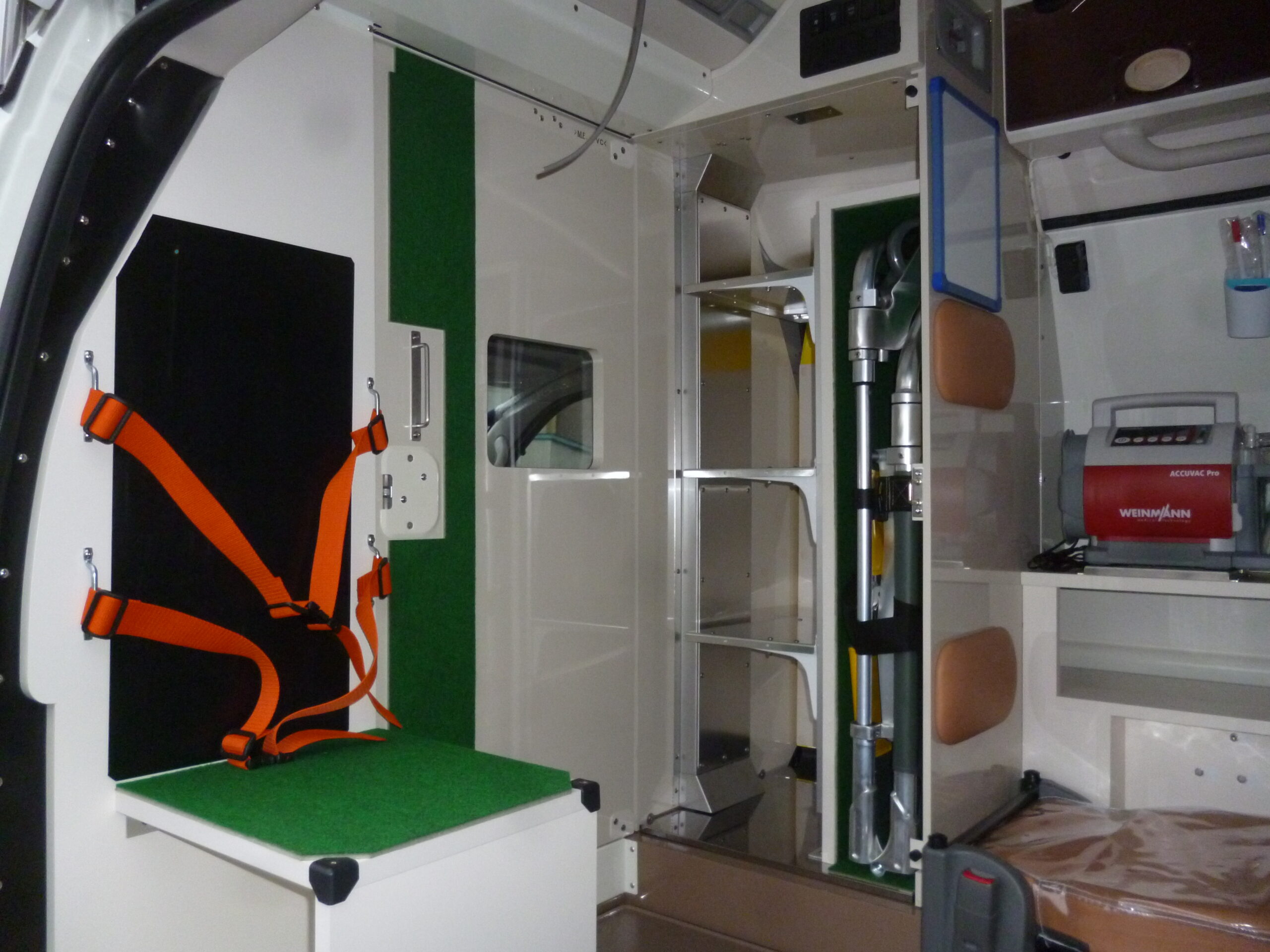 • 運転室と患者室の隔離壁扉は縦型収納庫の扉兼用となっています。